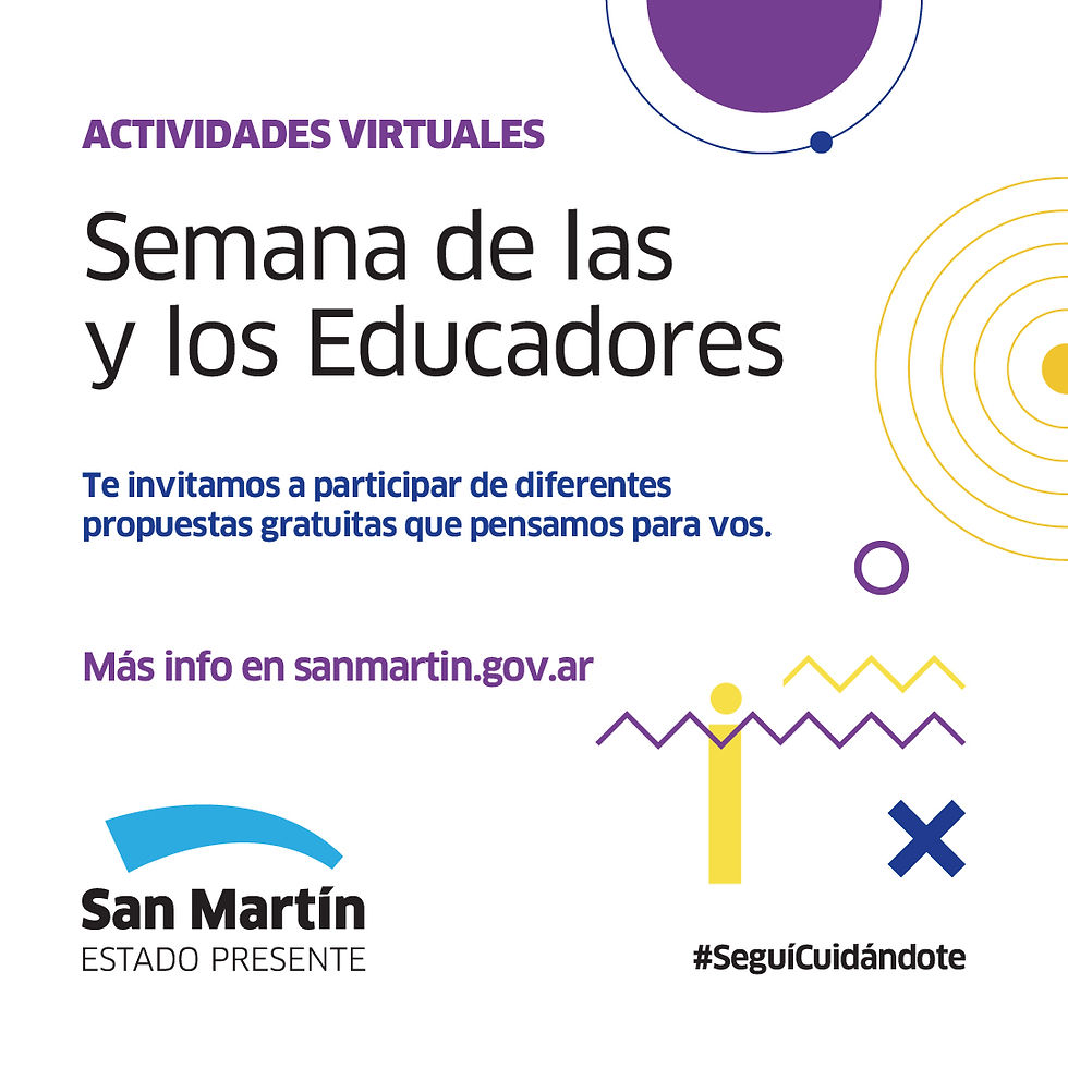 Del 9 al 11 de septiembre, San Martín tendrá propuestas culturales y recreativas para compartir con docentes de la ciudad. Actividades enmarcadas dentro de la Semana de las y los Educadores